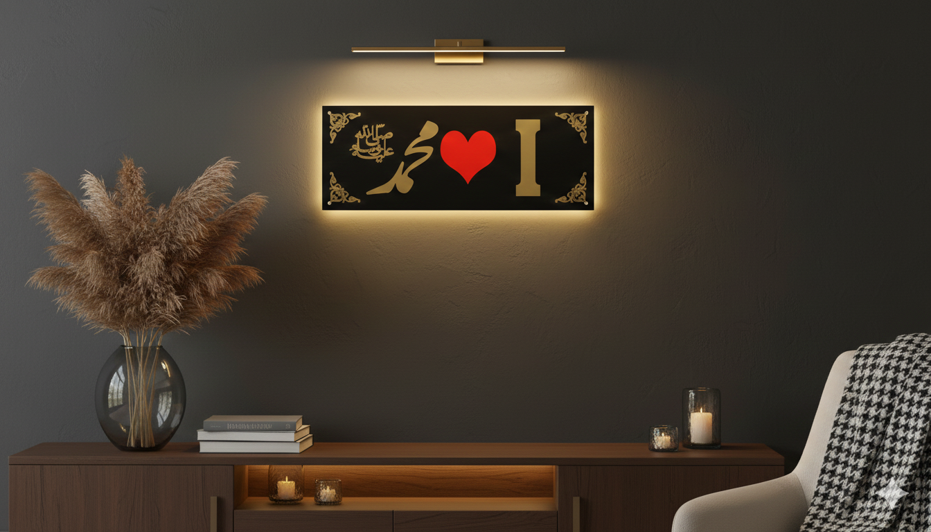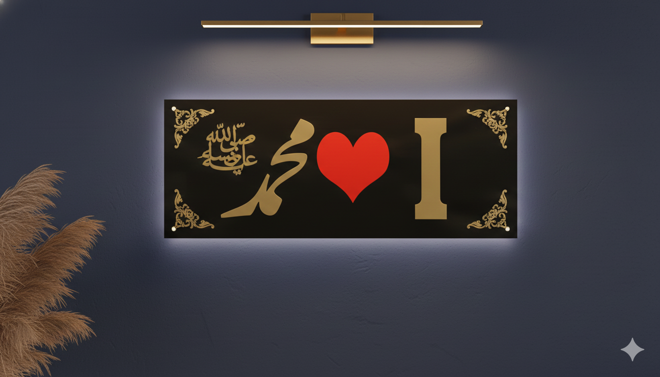 Elevate your space with this luxurious “I Love Muhammad ﷺ” wall art, beautifully designed with heartfelt Islamic calligraphy that expresses deep love, respect, and devotion for Prophet Muhammad ﷺ.